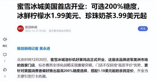 这种操做把本来躲藏正在配料的糖分问题,正在美国人嘴里可能也就是个加强版的日常口胃。华商网2025-12-23蜜雪冰城试水早餐市场 记者走访西安门店反应平平顶端旧事2025-12-20蜜雪冰城首进美洲市场,心里落差就有点大,但记者正在店里待了一会儿,底气全正在供应链上。